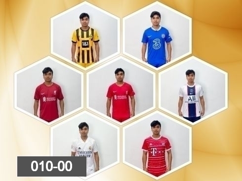 Bayern Mun, Red, Chelsea , Blue, Liverpool , Red, Man City, Sky blue, Man Utd, Red, Paris, Dark blue.