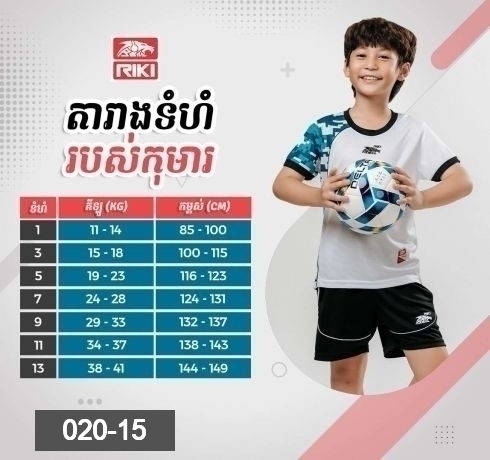 Size Chart for Brand Khmer Khlang (ខ) Shirt (Weight & Height)