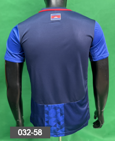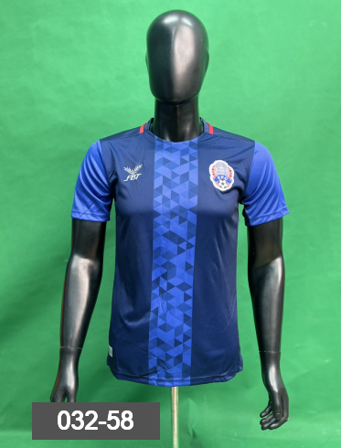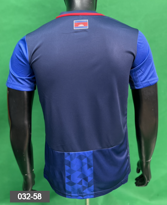 ខោអាវកាត់ពណ៌ខៀវ កបើក មានលេខខ្នង និងជើងខោ និងស្រោមជើង មានLogo Sticker ឆ្វេង ស្ដាំ Sponsor (Smart) នៅពោះខាងមុខ