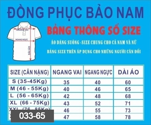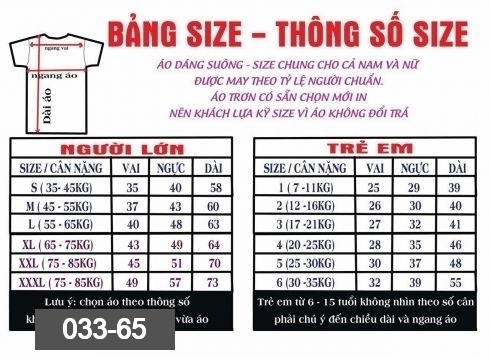 ស្តង់ដារទំហំខោអាវ វៀតណាម/ចិន តាមទំងន់ & កំពស់